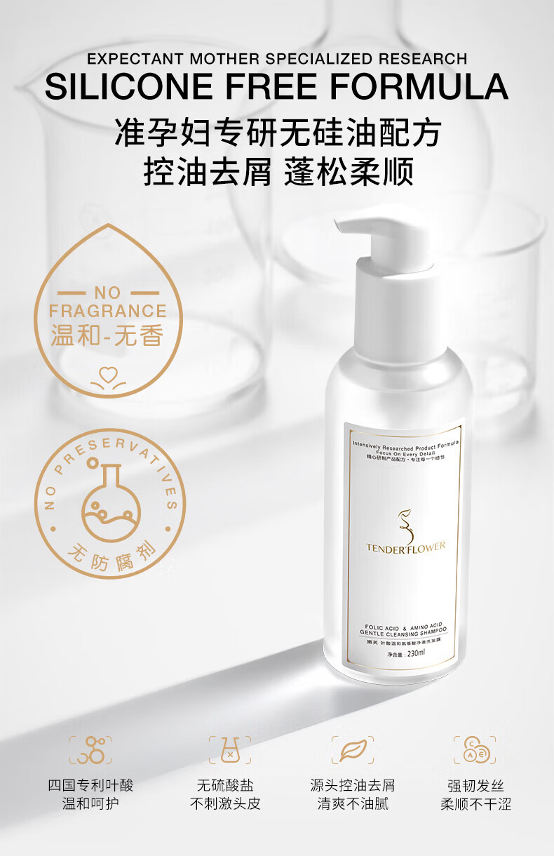 嫩芙叶酸氨基酸洗发水准孕妇专用期套装2瓶无香无味控油230ml无硅油