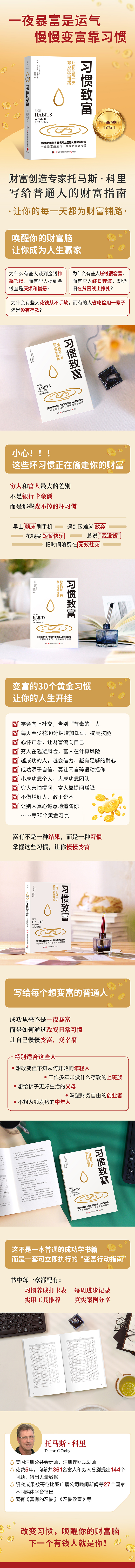 习惯致富 托马斯·科里 财富创造专家托马斯·科里历时5年总结出233位百万富翁的致富习惯 一夜暴富是运气,慢慢变富靠习惯 习惯致富