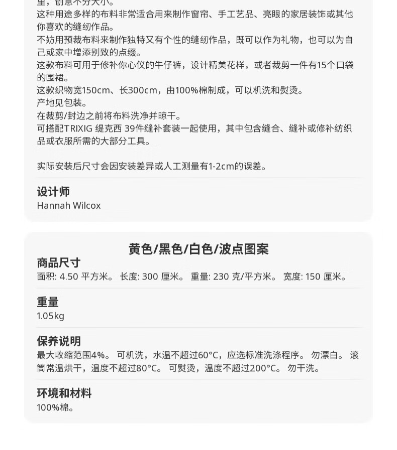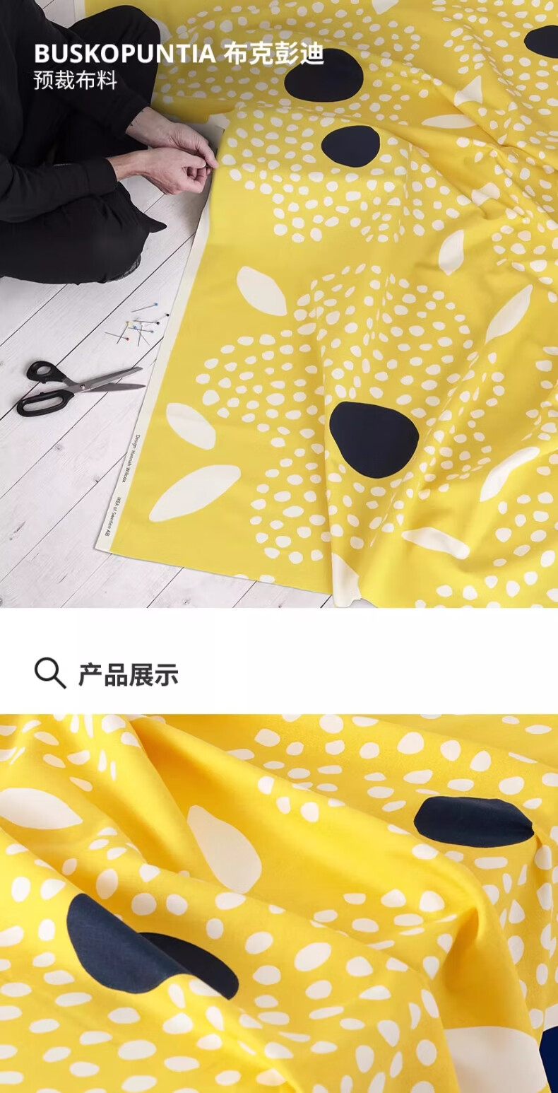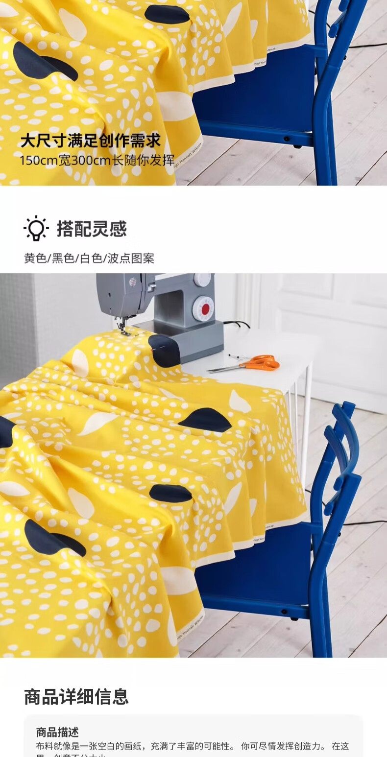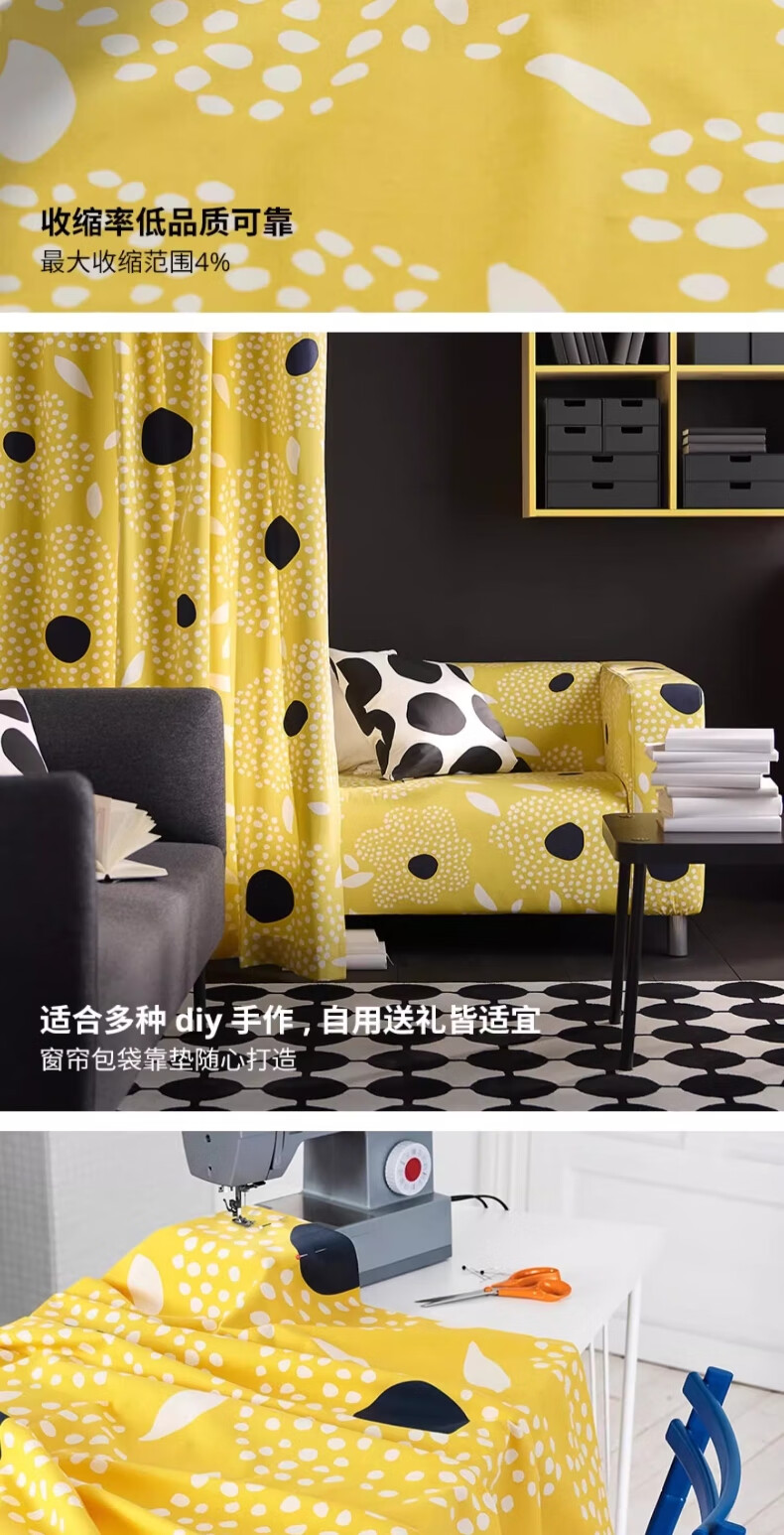 宜家(IKEA)BUSKOPUNTIA布克彭迪预裁布料手工DIY可机洗 黄色/黑色/白色/波点图案