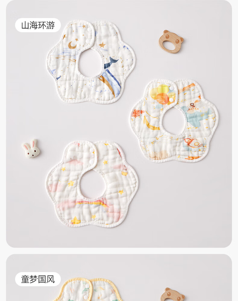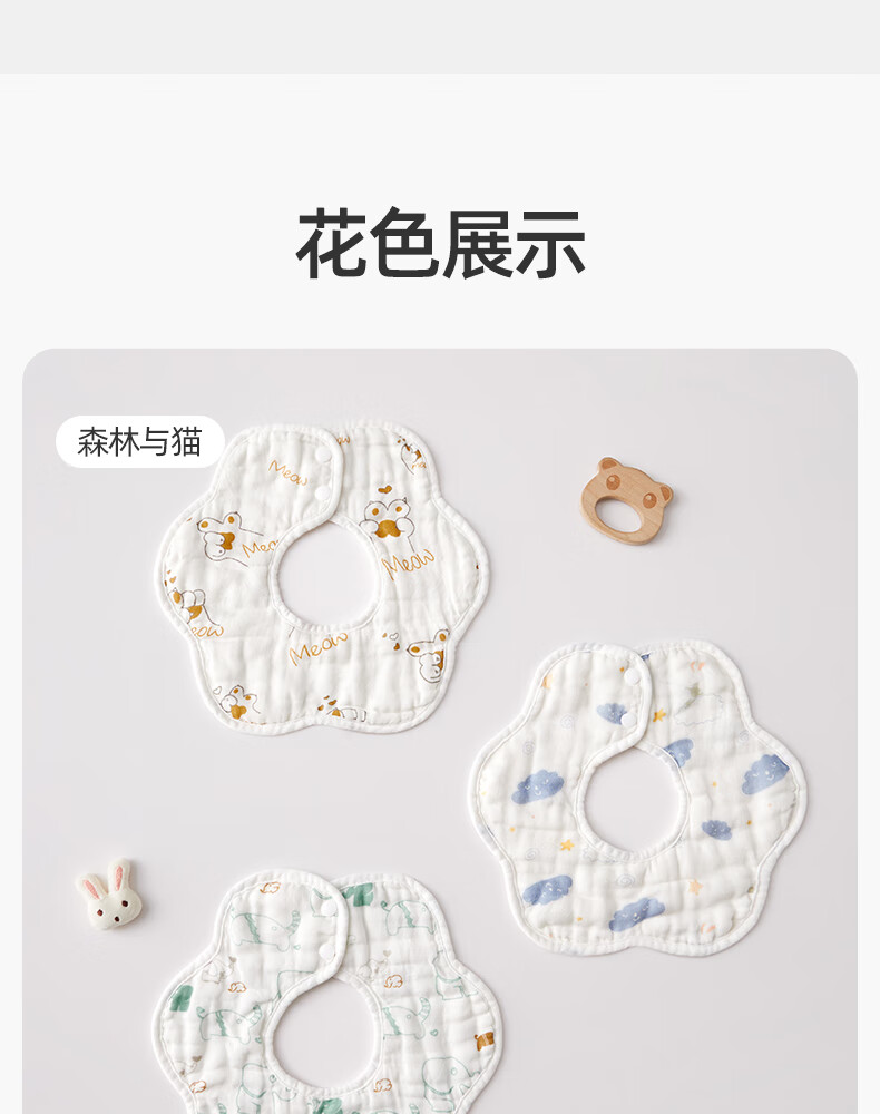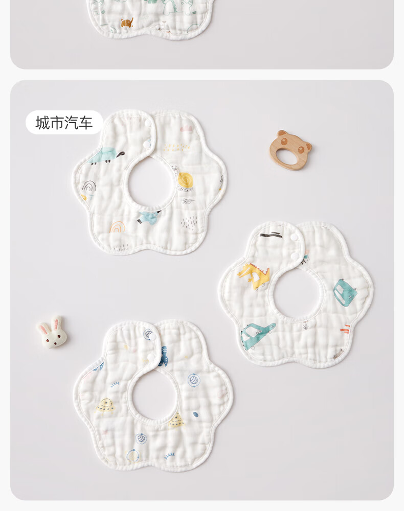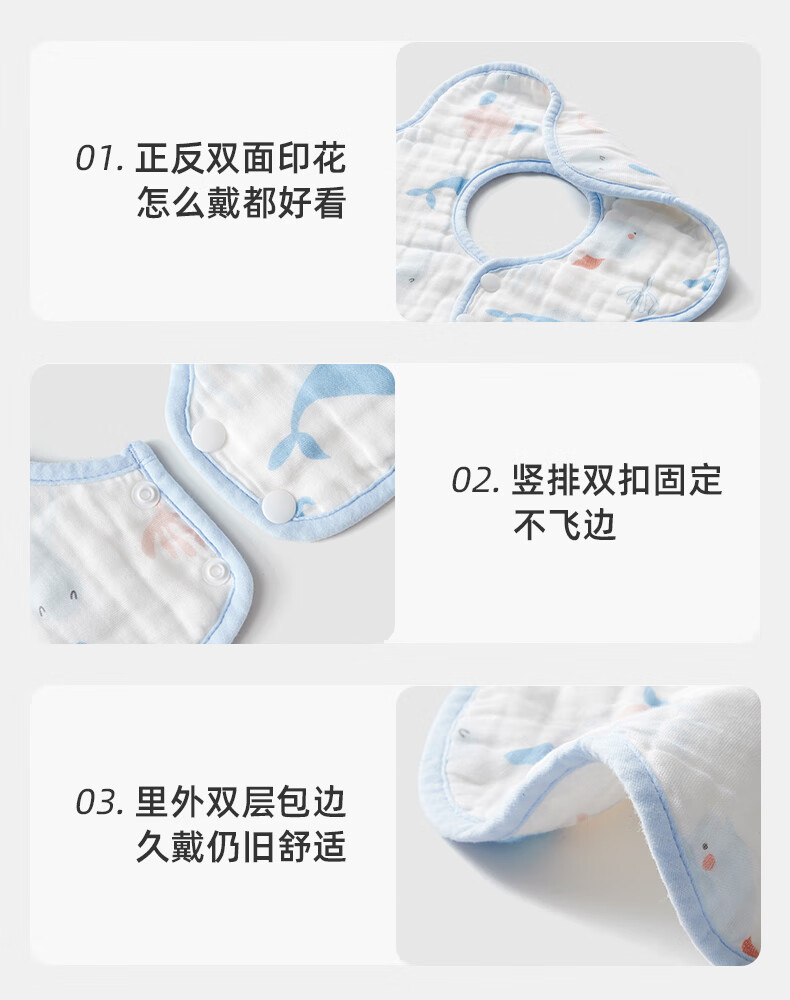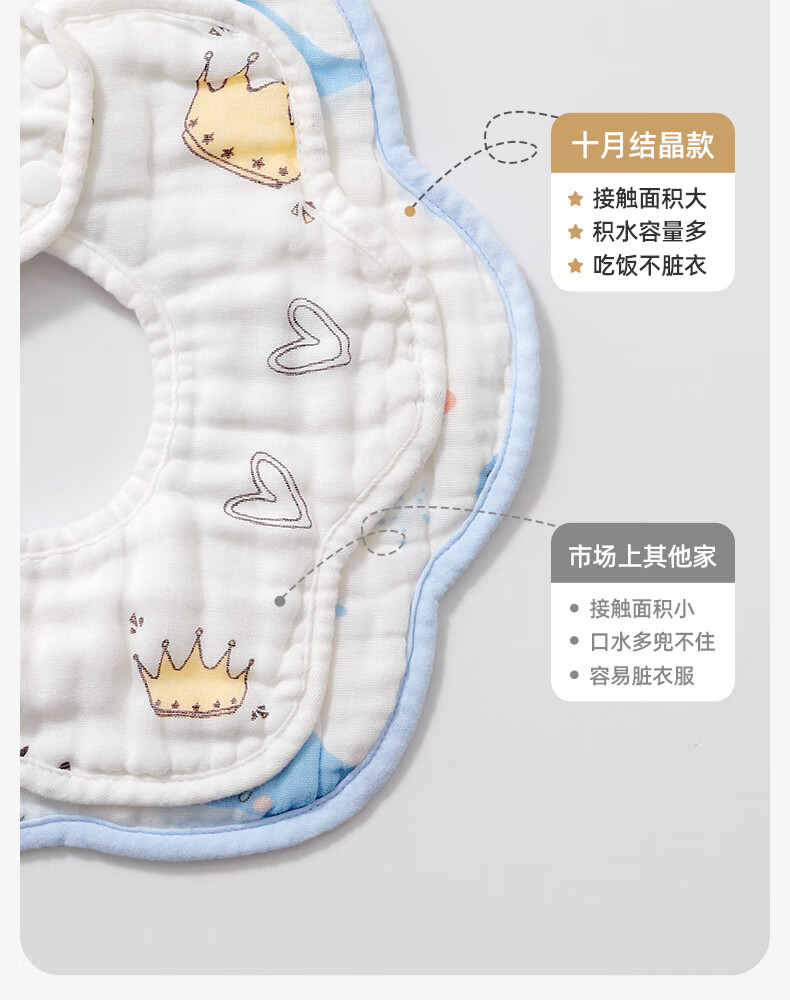 十月结晶花边围嘴8层加厚防水3条装0-2岁宝宝围兜饭兜口水巾可旋转 27*8cm