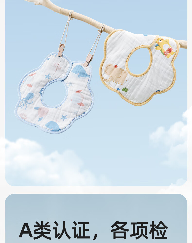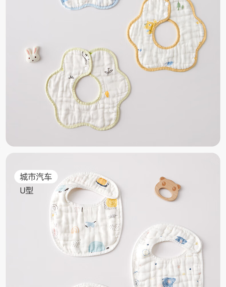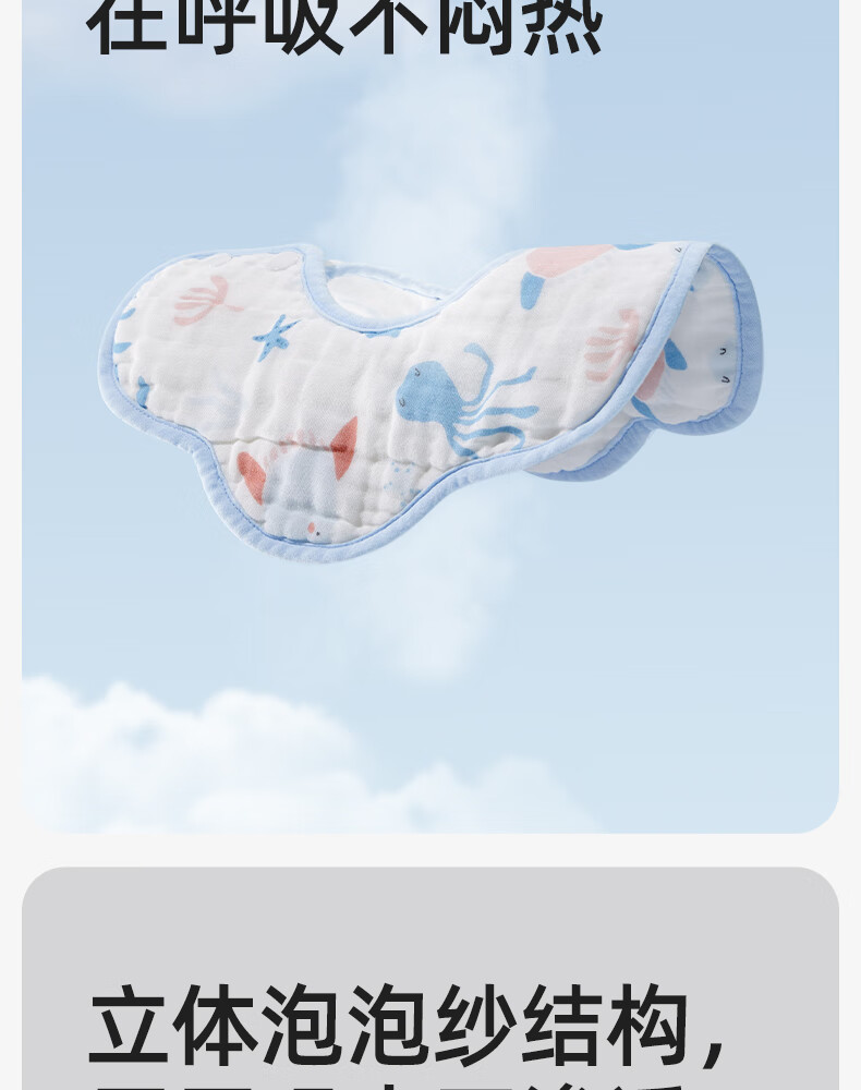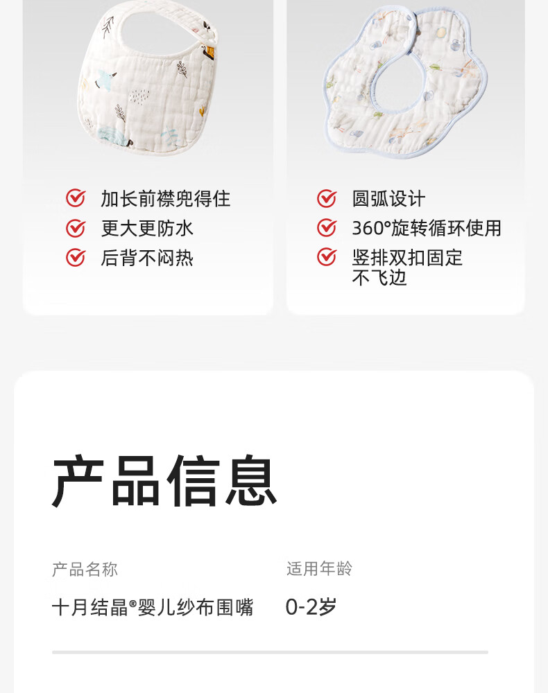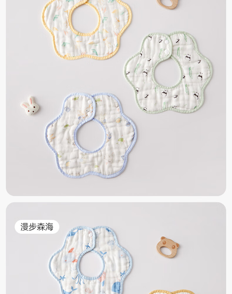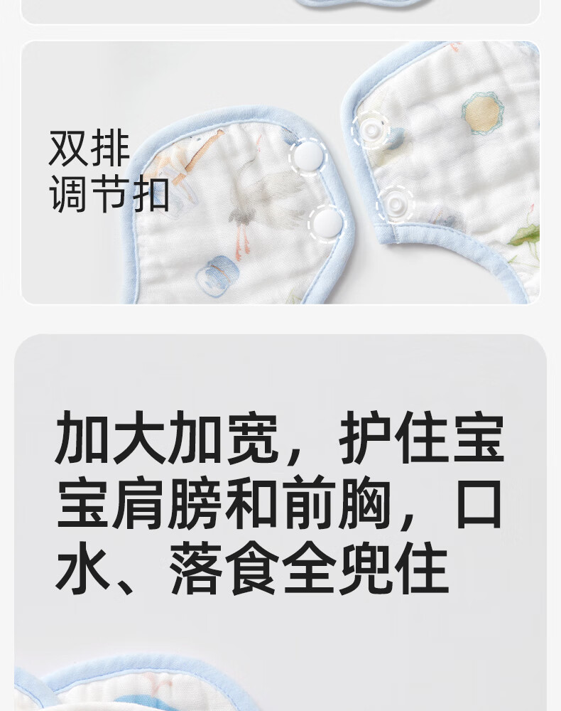 十月结晶花边围嘴8层加厚防水3条装0-2岁宝宝围兜饭兜口水巾可旋转 27*8cm