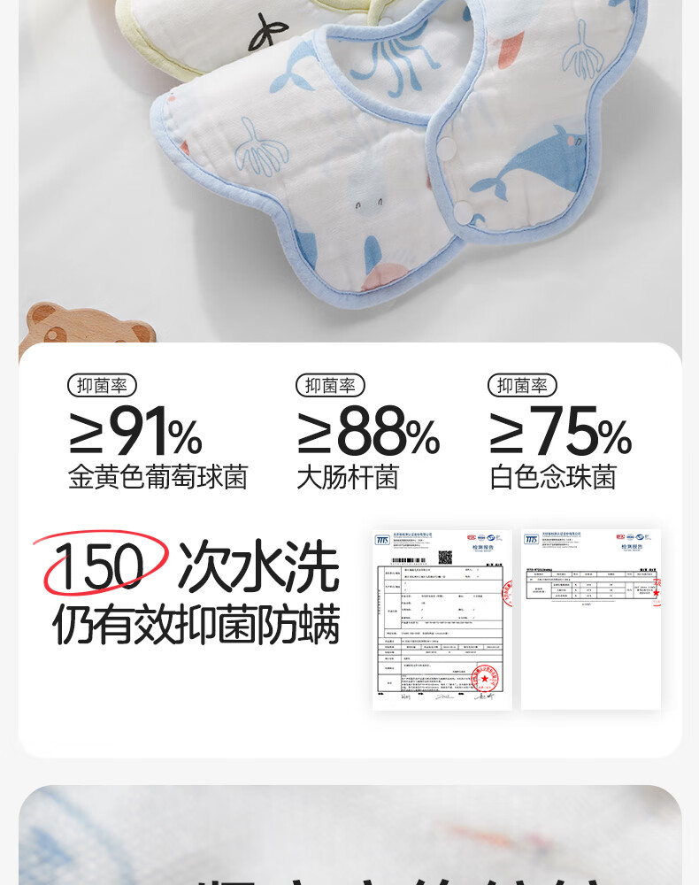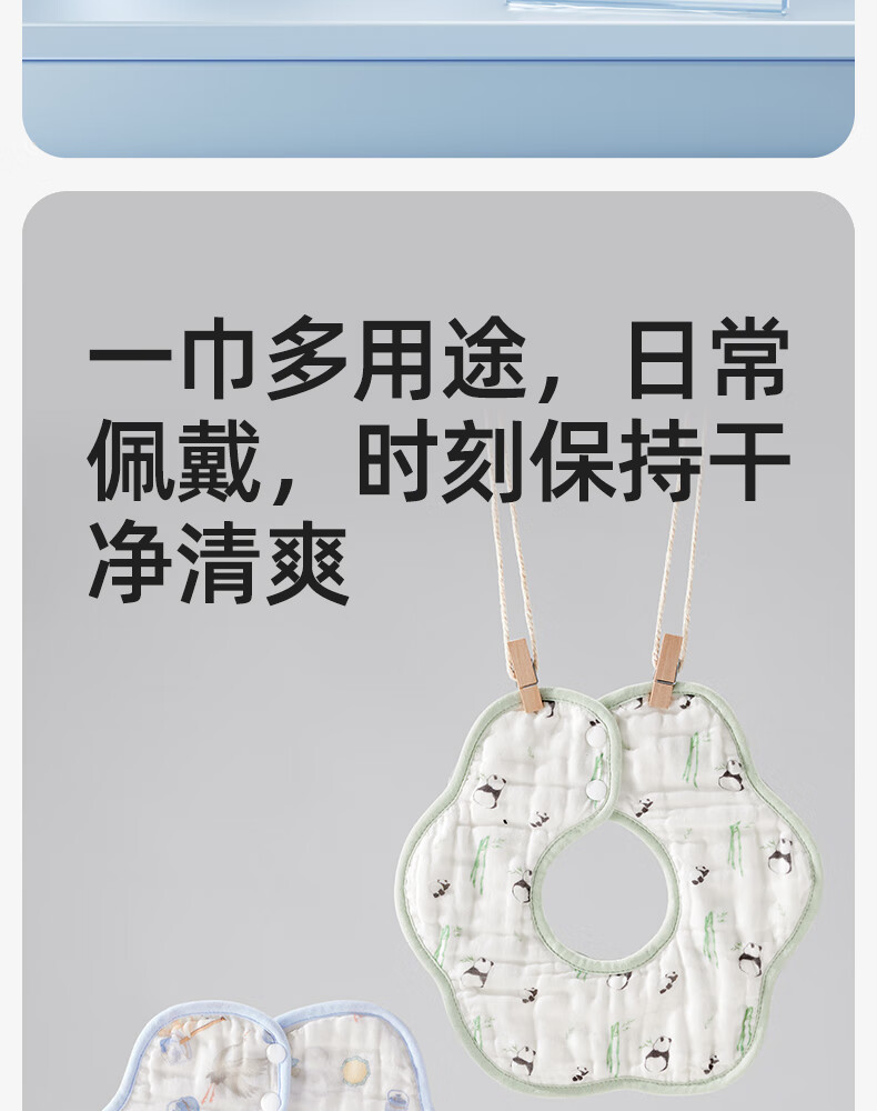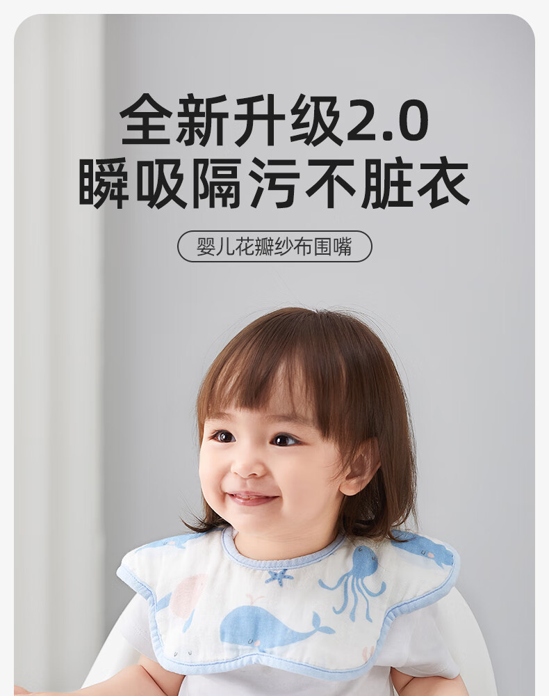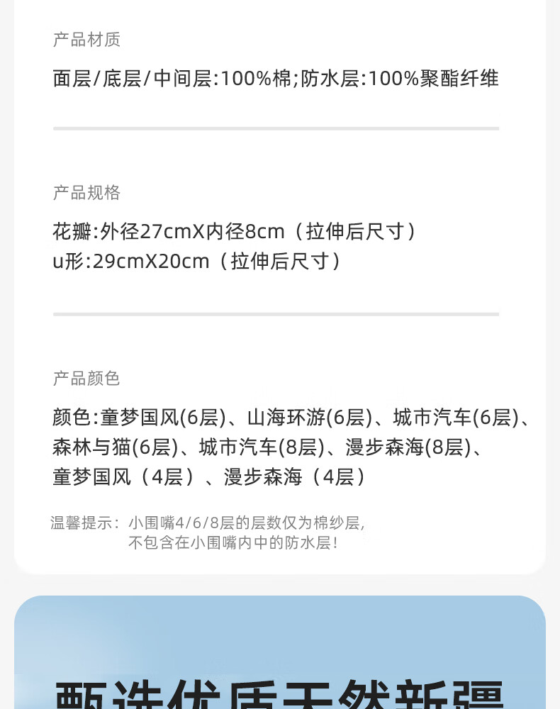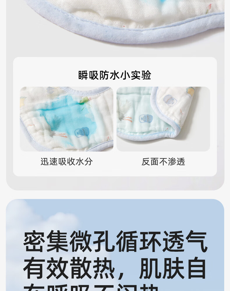 十月结晶花边围嘴8层加厚防水3条装0-2岁宝宝围兜饭兜口水巾可旋转 27*8cm