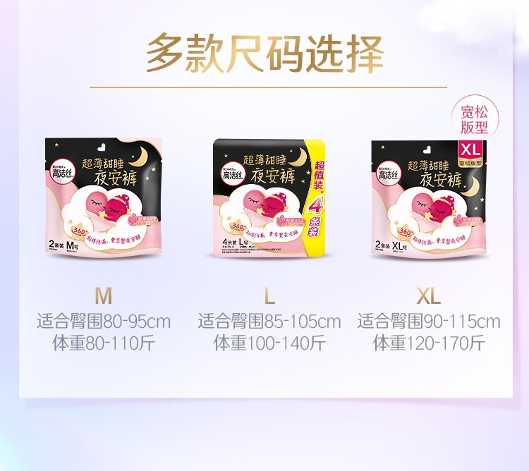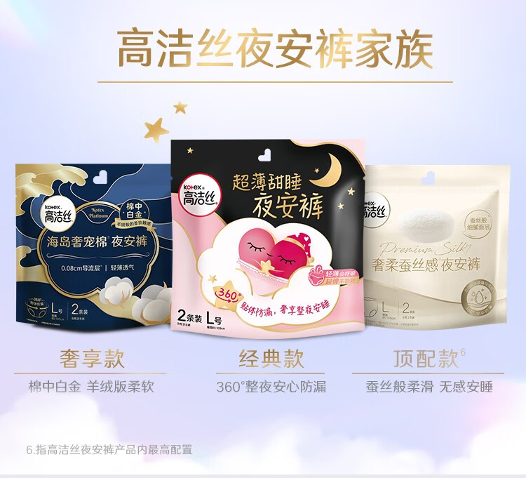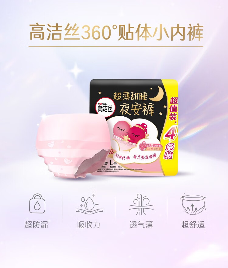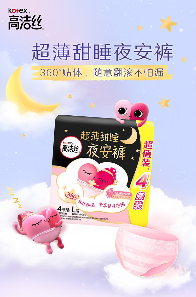 高洁丝(Kotex) 夜安裤裤型卫生巾安睡裤夜用L码安全裤安心裤6条(拍2件12条)