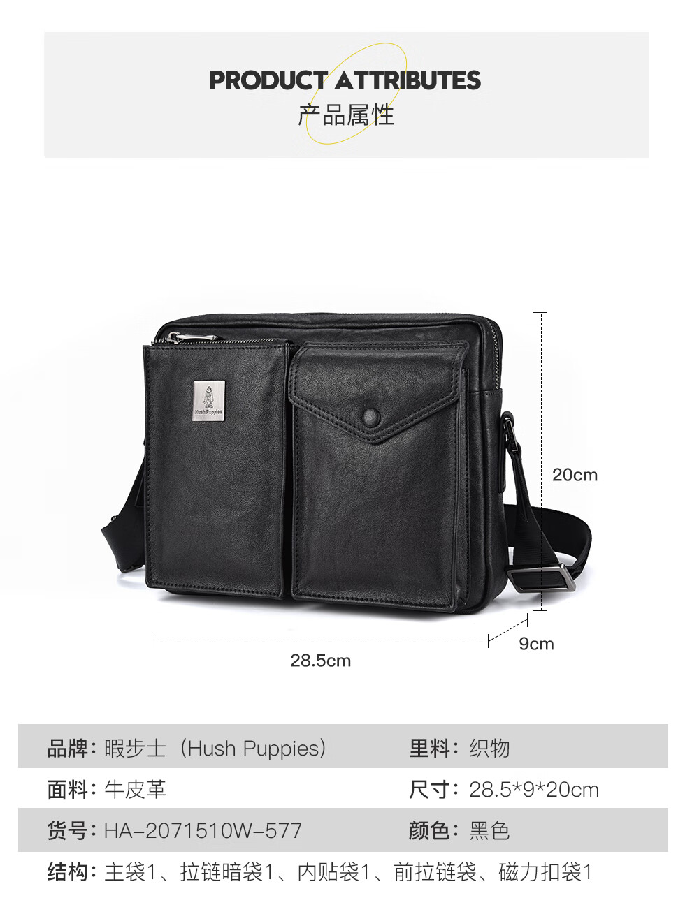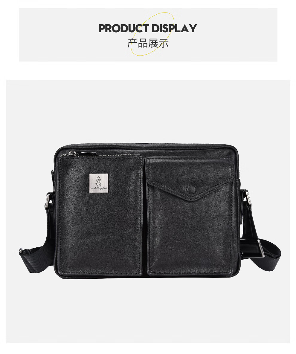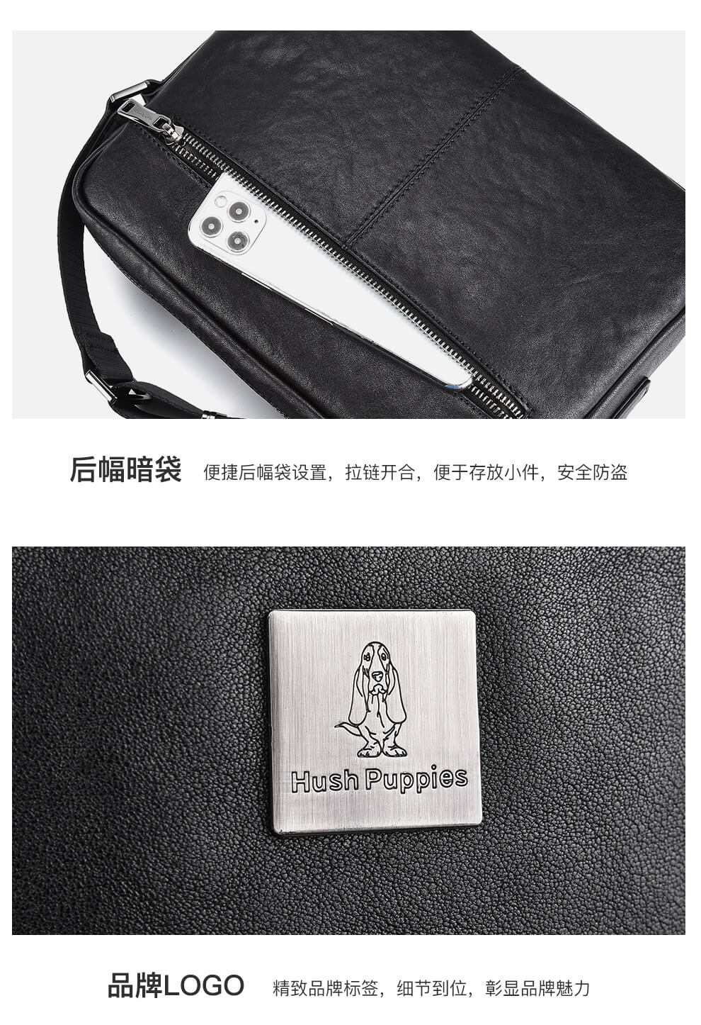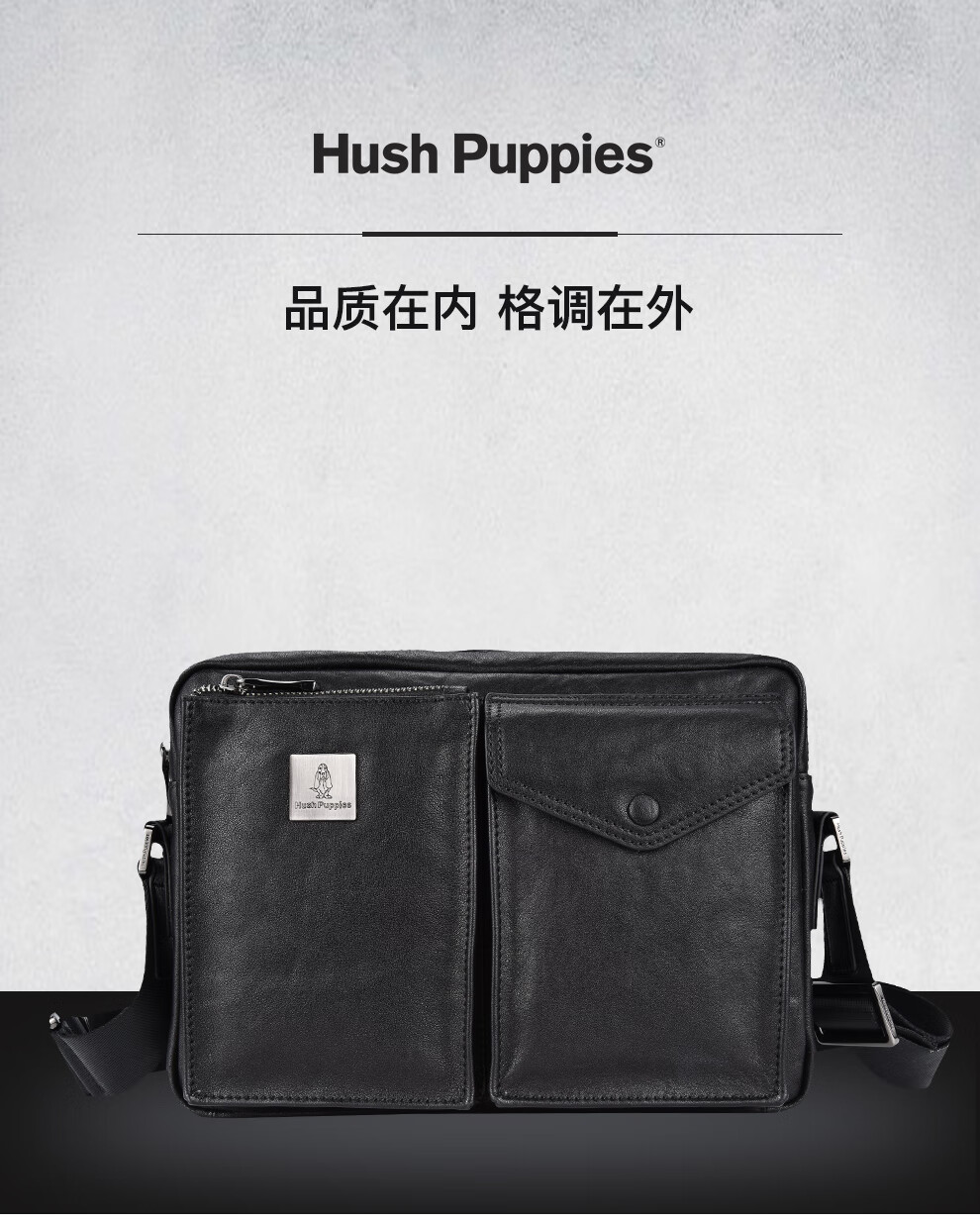 暇步士(Hush Puppies)单肩包男包横款牛皮大容量休闲潮流男士挎包邮差包生日礼物