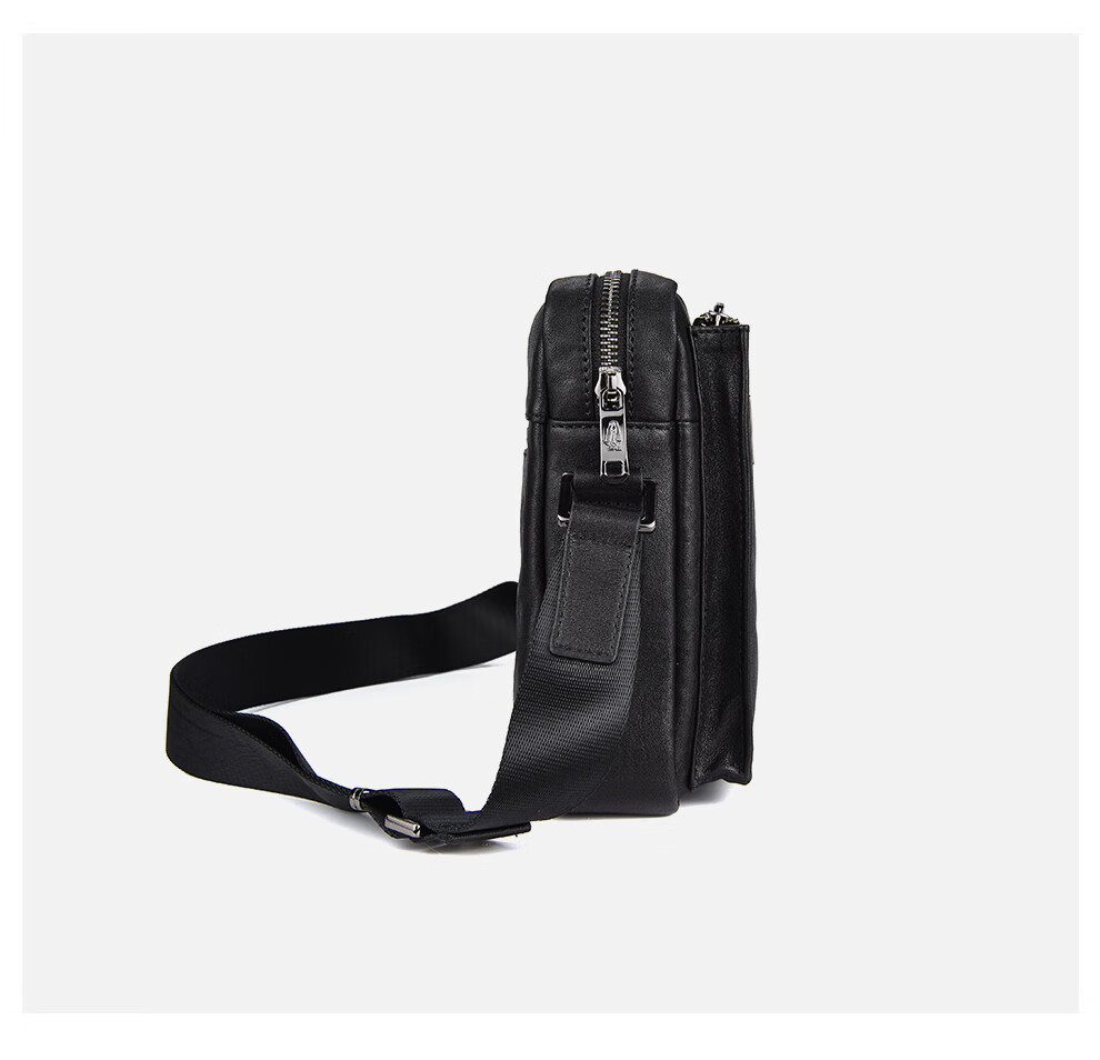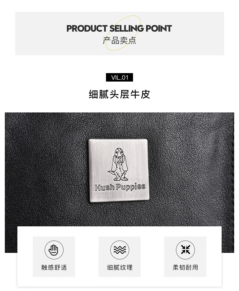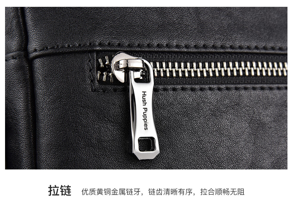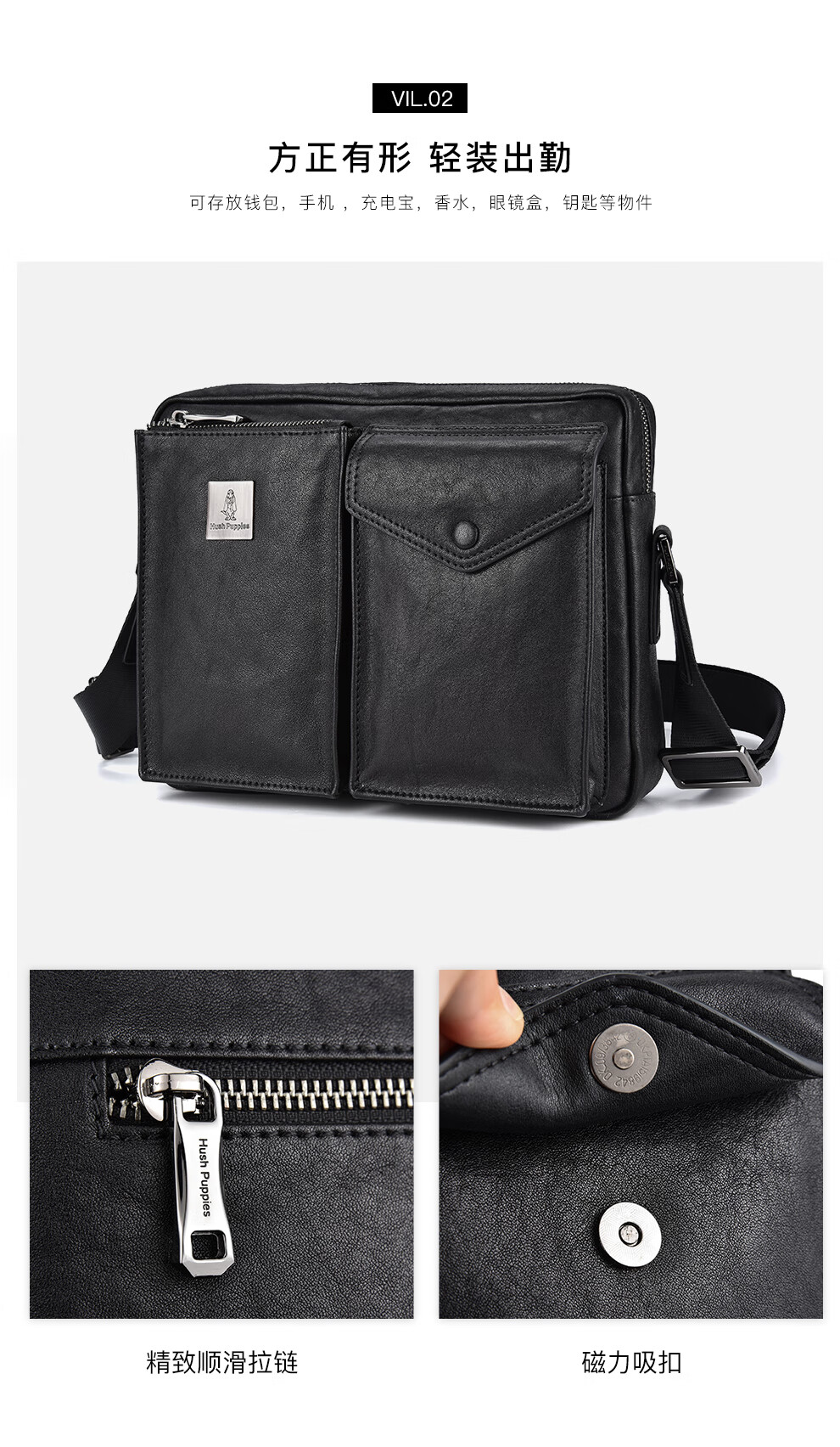 暇步士(Hush Puppies)单肩包男包横款牛皮大容量休闲潮流男士挎包邮差包生日礼物