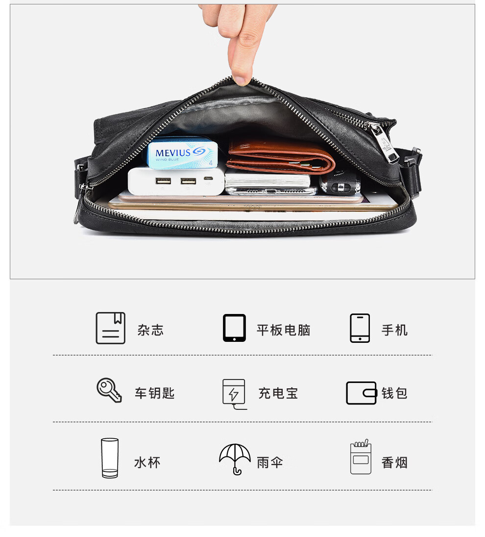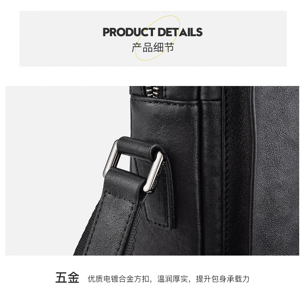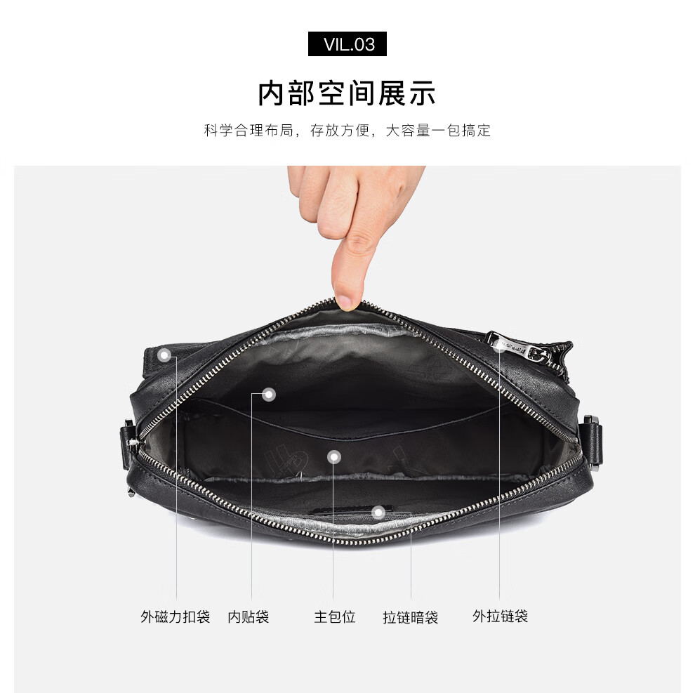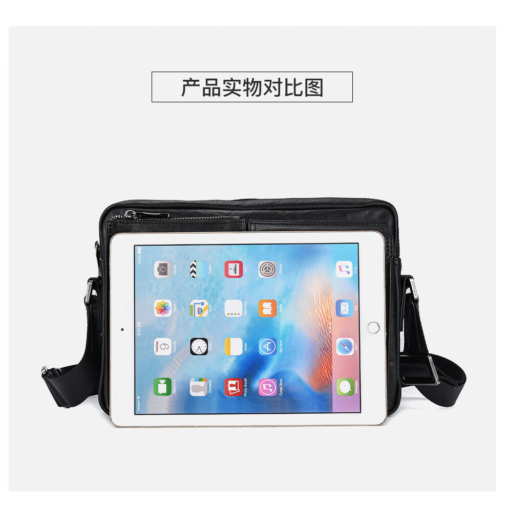 暇步士(Hush Puppies)单肩包男包横款牛皮大容量休闲潮流男士挎包邮差包生日礼物