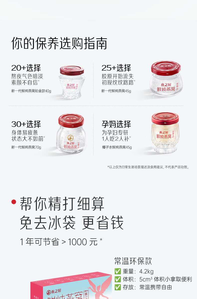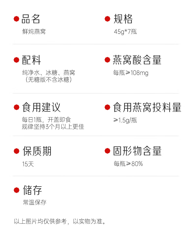 燕之屋鲜炖燕窝冰糖营养滋补【投料1.5g】孕妇礼品即食燕窝鲜享款45g 【无糖款】45g*28瓶【默认每周发7瓶】