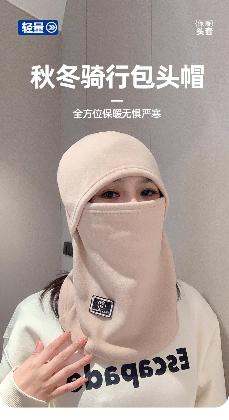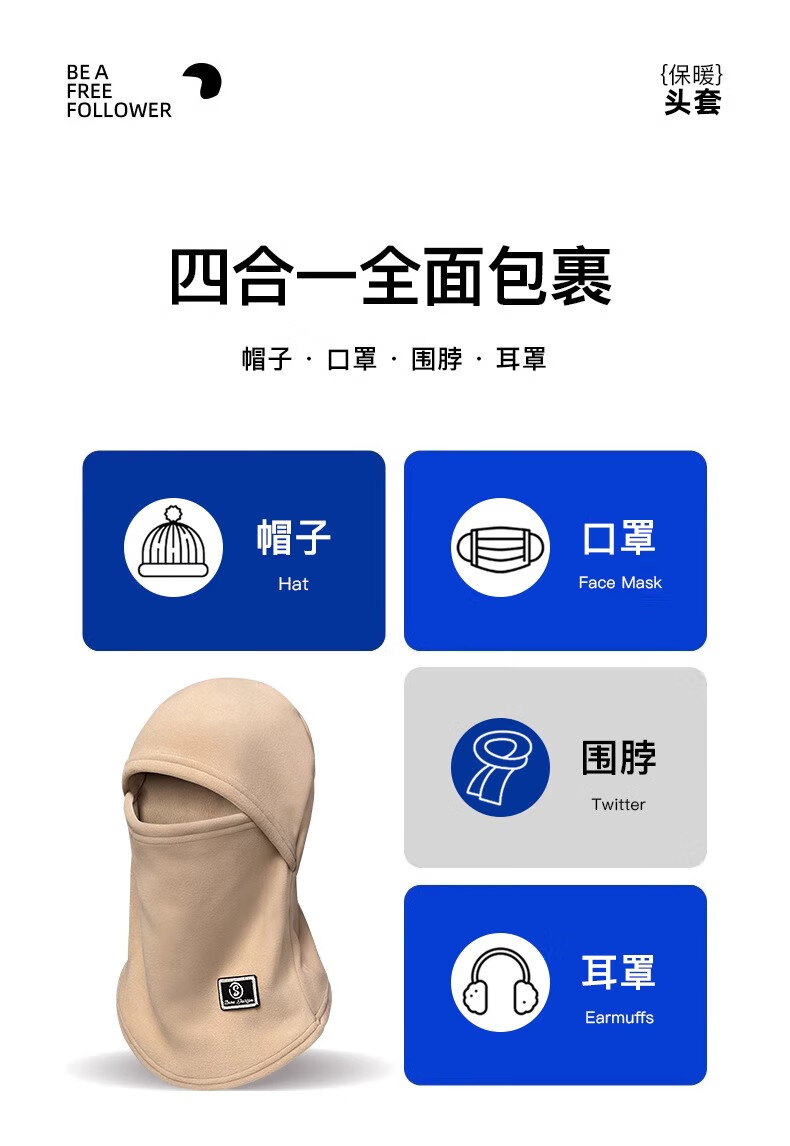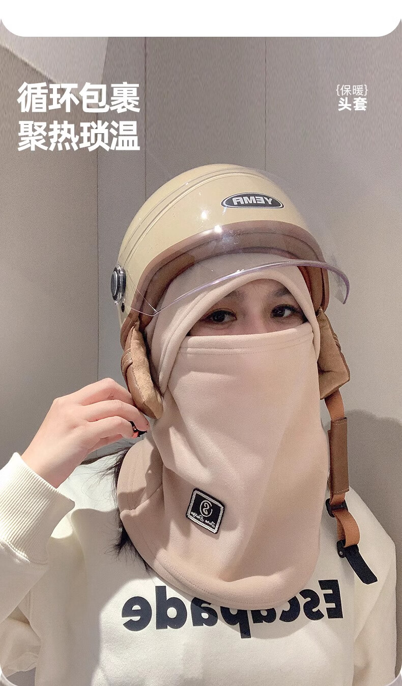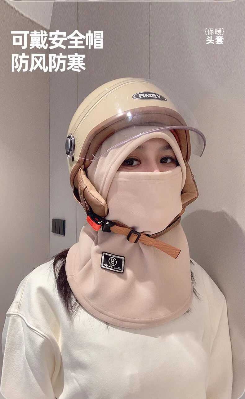 动荡橙冬季保暖头套女士骑行电动车防风防寒面罩头盔内胆围脖一体帽子男 保暖防寒头套【卡其色】可戴头盔