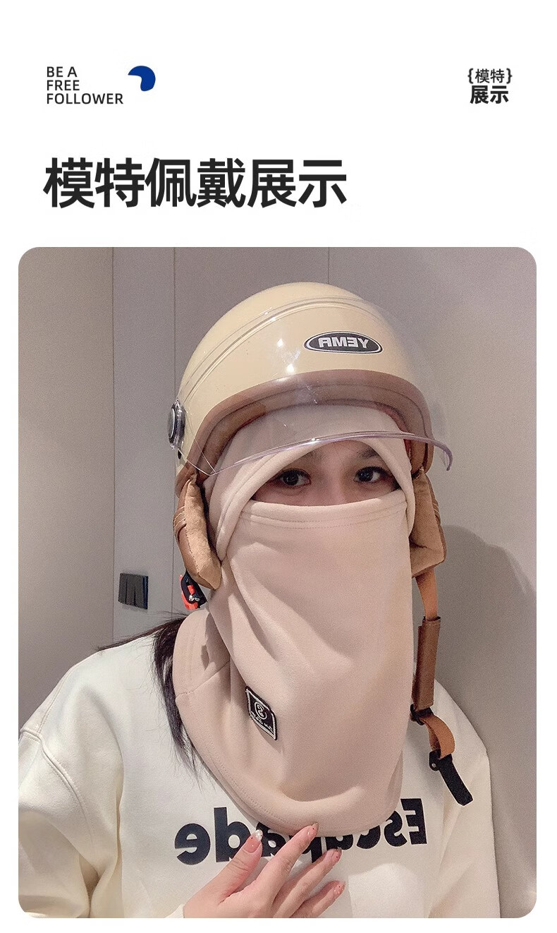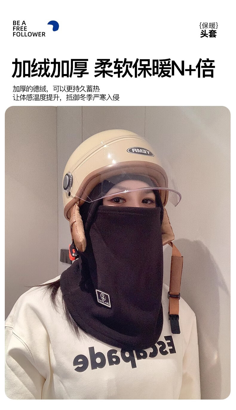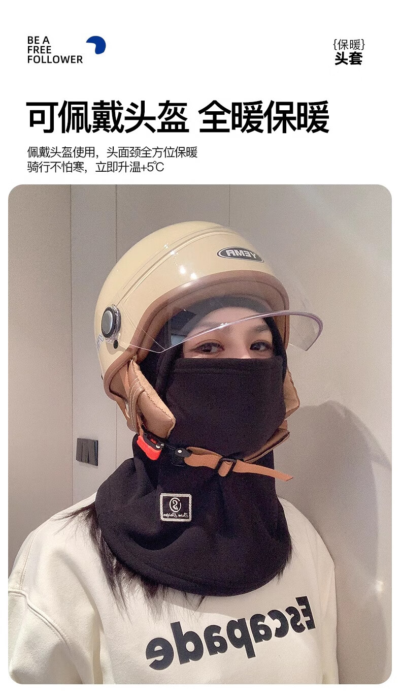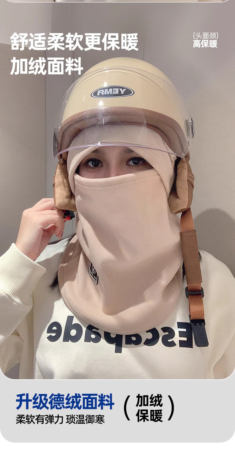 动荡橙冬季保暖头套女士骑行电动车防风防寒面罩头盔内胆围脖一体帽子男 保暖防寒头套【卡其色】可戴头盔