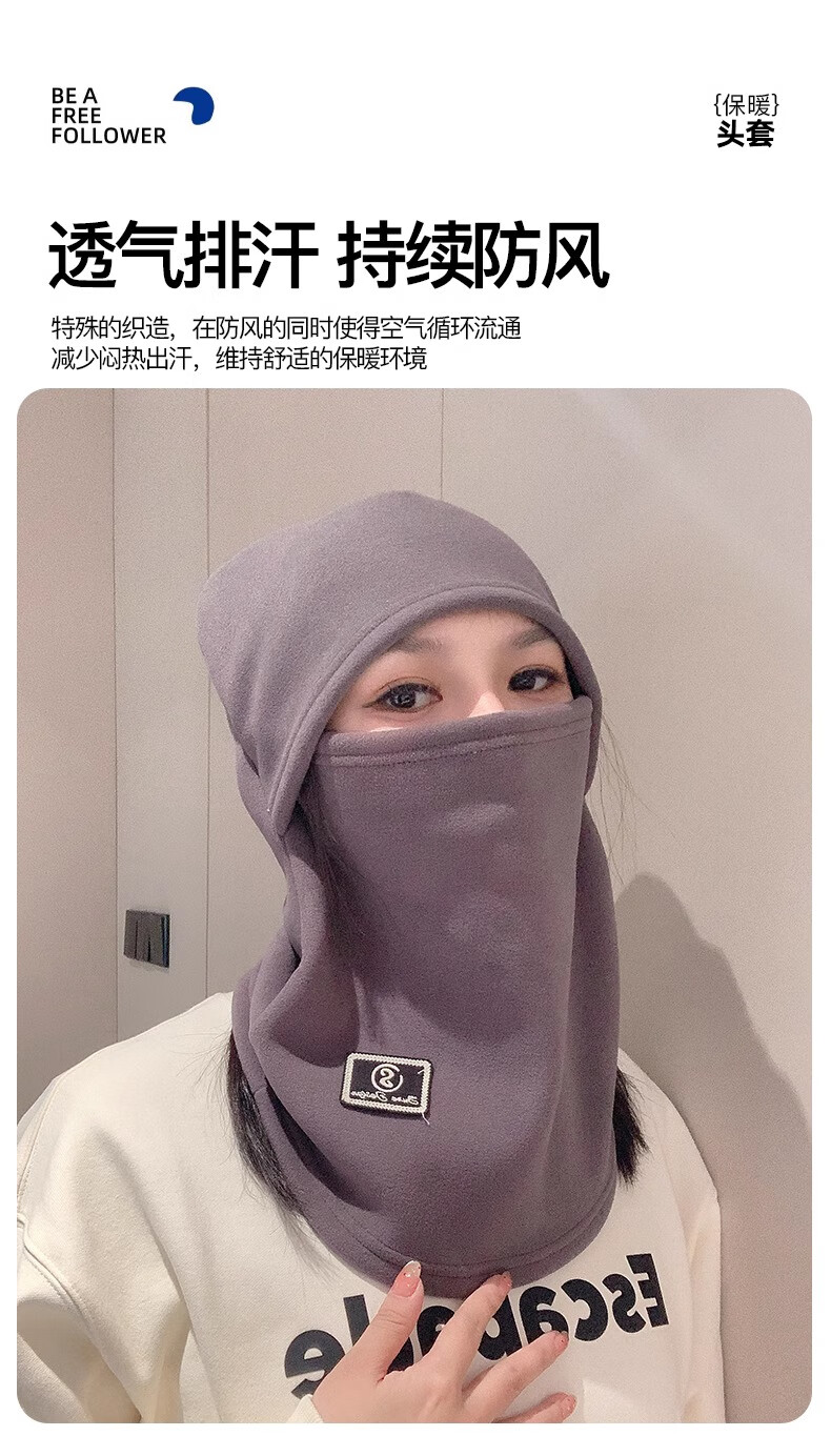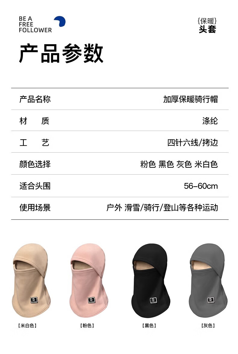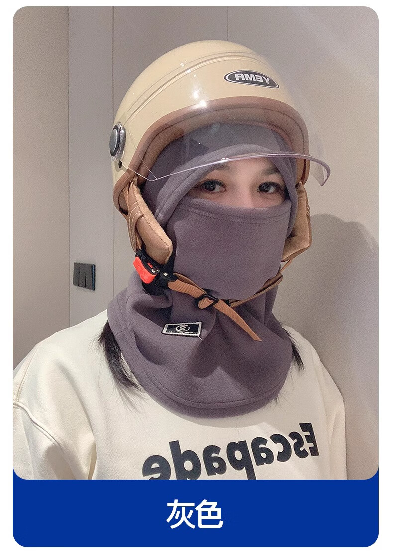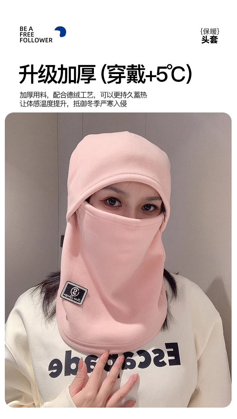 动荡橙冬季保暖头套女士骑行电动车防风防寒面罩头盔内胆围脖一体帽子男 保暖防寒头套【卡其色】可戴头盔