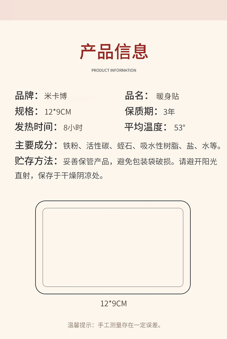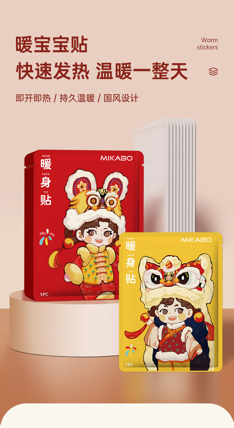 米卡博暖身贴热敷暖贴暖腰腹关节自发加热保宫暖女生理经期大姨妈 30片装【红色舞狮】发热持久