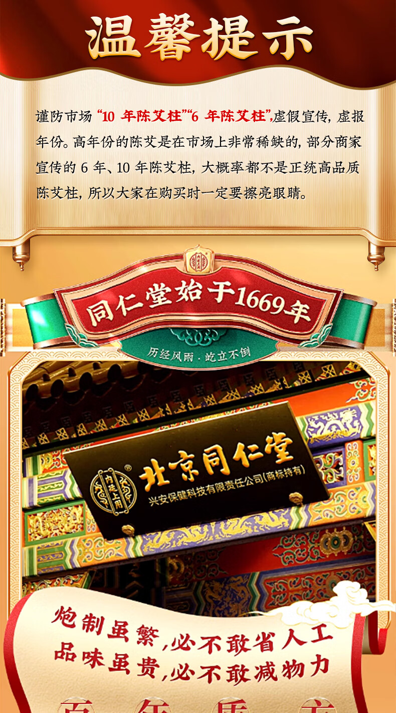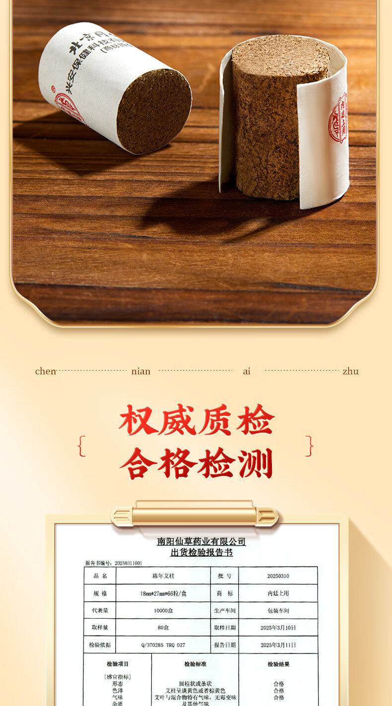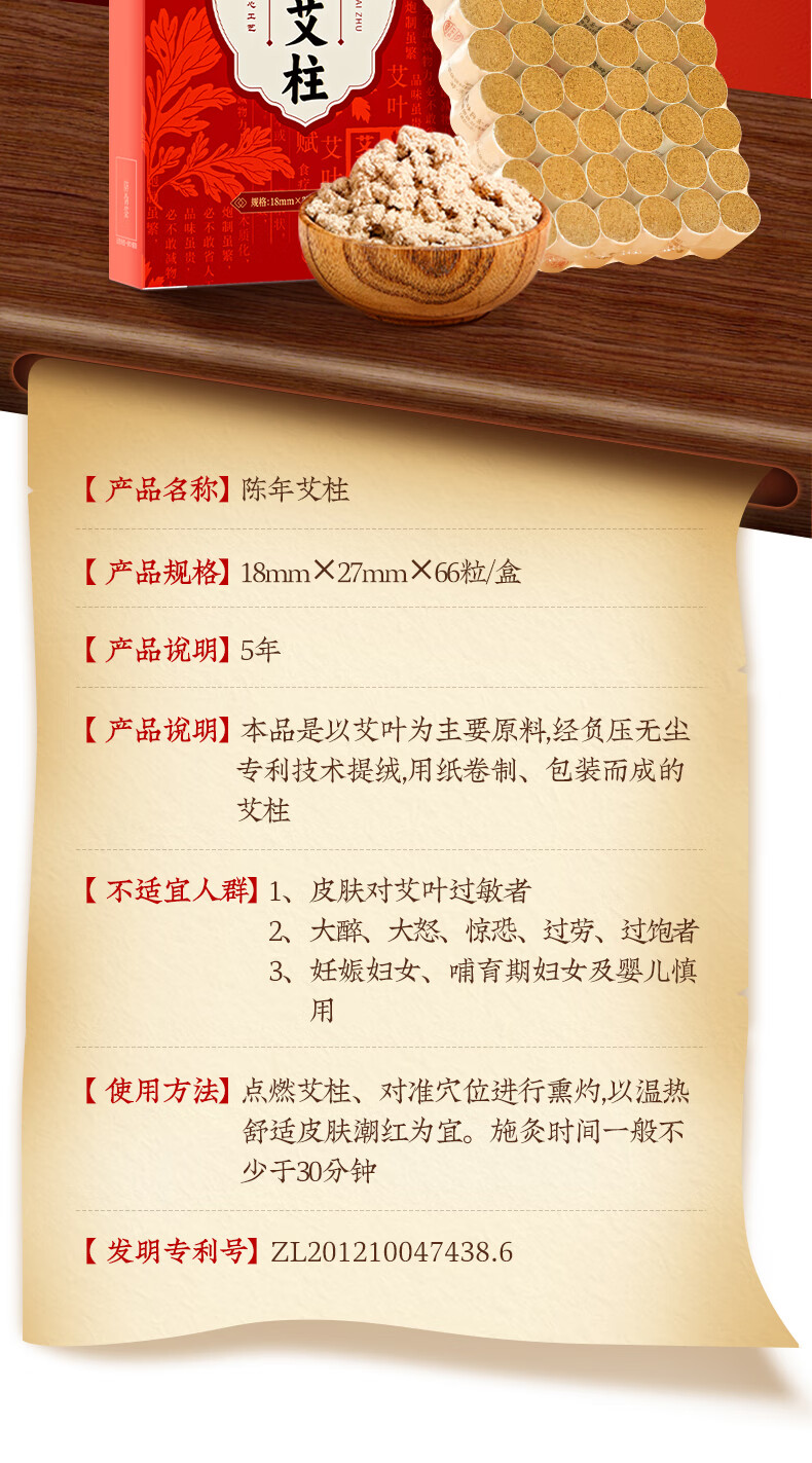 内廷上用北京同仁堂5年陈年艾柱艾灸条家用微烟艾灸柱香薰艾条陈年艾绒柱H 【2袋见效装】66粒/盒