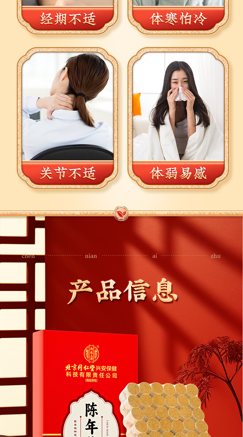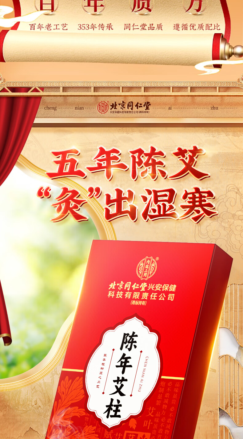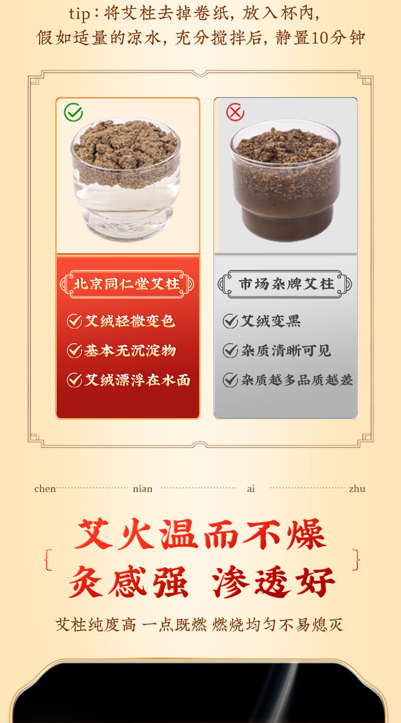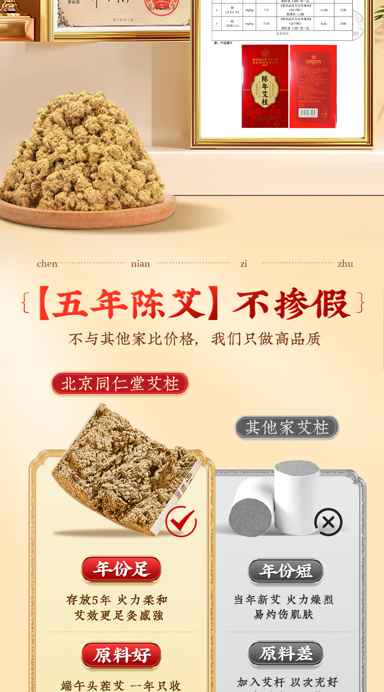 内廷上用北京同仁堂5年陈年艾柱艾灸条家用微烟艾灸柱香薰艾条陈年艾绒柱H 【2袋见效装】66粒/盒