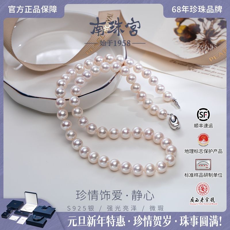 南珠宫[静心]淡水珍珠项链S925银近圆强光气质优雅元旦新年礼物